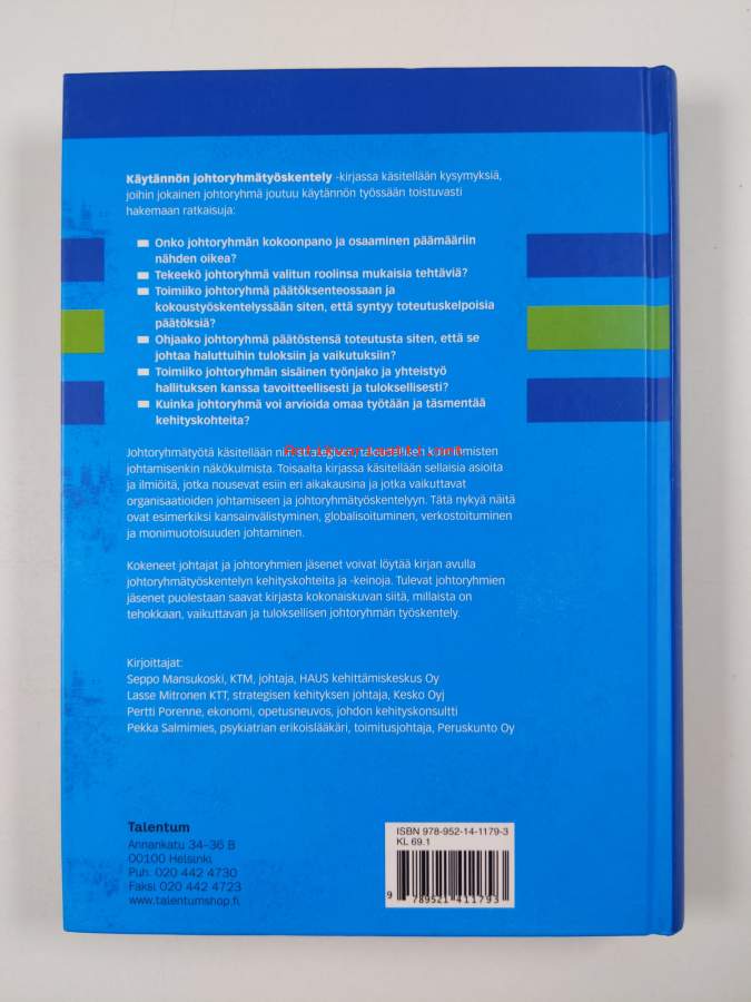 Muu(t) tekijä(t): Seppo MansukoskiMerkinnät: omistajamerkintä (leima)Asiasanat: johtaminen, johtajat, johtoryhmät