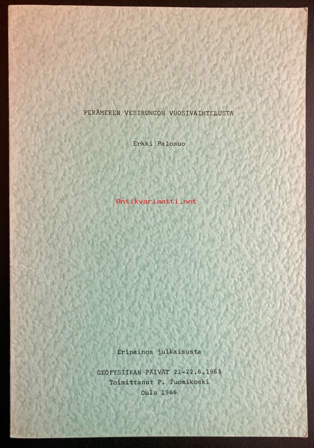 Eripainos tieteellisestä julkaisusta. Geofysiikan päivät 21-22.6.1965.