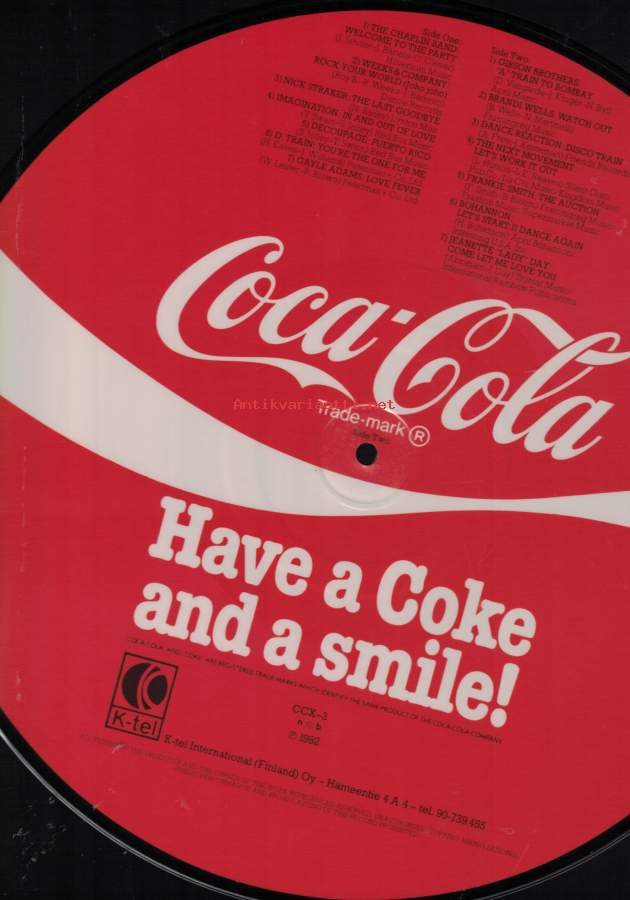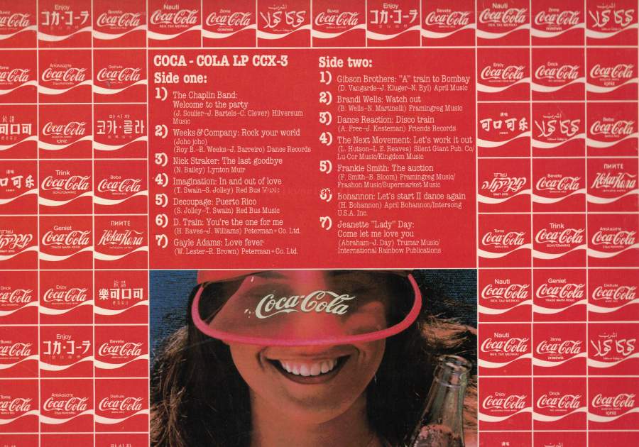 K-Tel – CCX-3, Coca-Cola – CCX-3A1 The Chaplin Band Welcome To The Party A2 Weeks & Co. Rock Your World (Joho Joho) A3 Nick Straker The Last Goodbye A4 Imagination In And Out Of Love A5 Decoupage Puerto Rico A6 D.Train You´re The One For Me A7 Gayle Adams Love Fever B1 Gibson Brothers "A" Train To Bombay B2 Brandi Wells Watch Out B3 Dance Reaction Disco Train B4 The Next Movement Let´s Work It Out B5 Frankie Smith The Auction B6 Bohannon Let´s Start II Dance Again B7 Jeanette "Lady" Day Come Let Me Love You-postipaketti