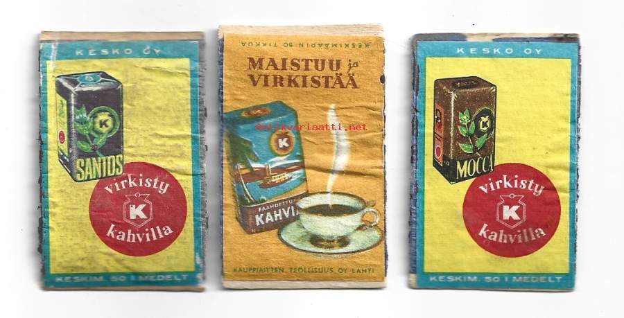 K- kahvia 3 eril- tulitikkuetiketti tulitikkuaskin vanerikansi