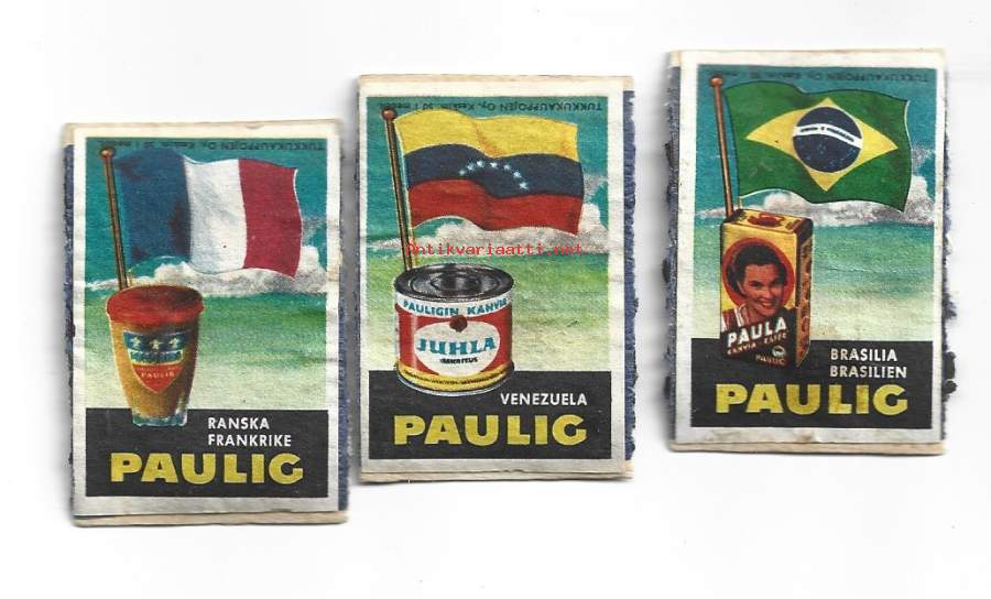 Paulig 3 eril- tulitikkuetiketti tulitikkuaskin vanerikansi
