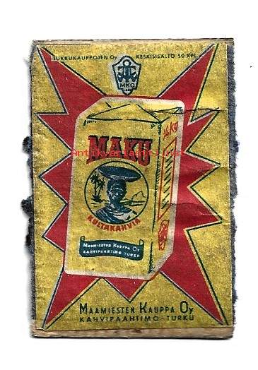 Maku kahvia / Maamiesten Kauppa Oy- tulitikkuetiketti tulitikkuaskin vanerikansi