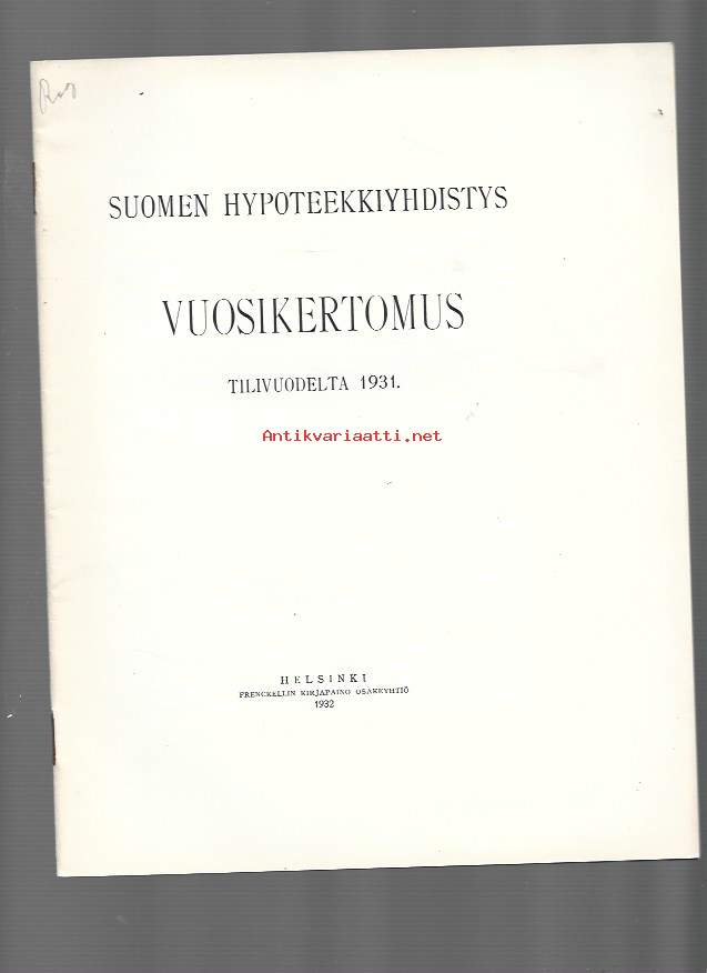 Suomen Hypoteekkiyhdistys vuosikertomus 1931