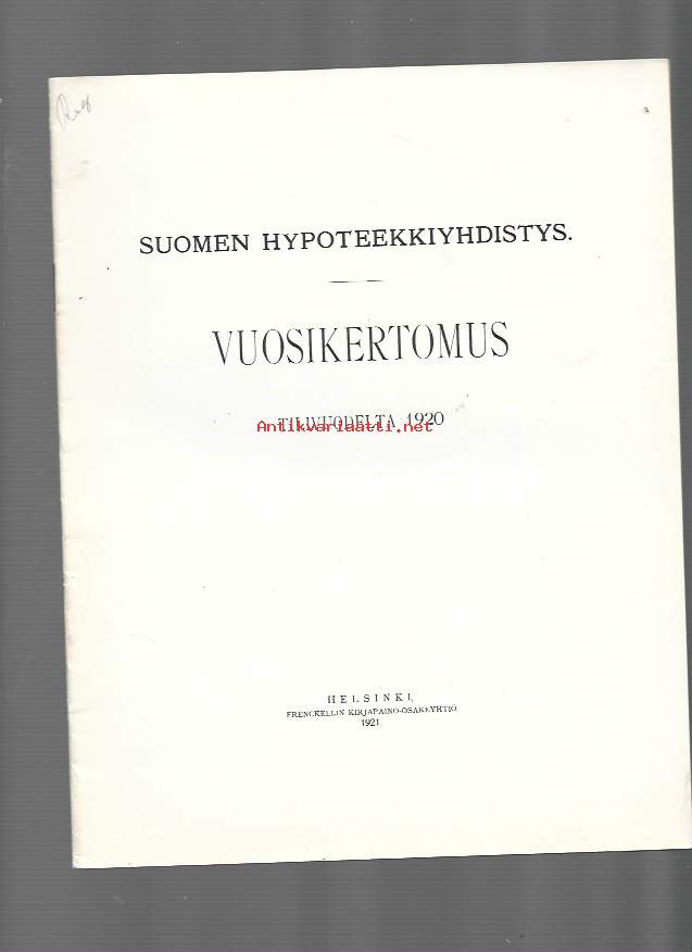 Suomen Hypoteekkiyhdistys vuosikertomus 1920