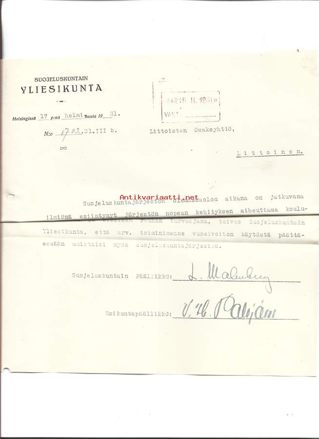Kaarlo Lauri Torvald Malmberg (8. toukokuuta 1888 Helsinki – 14. maaliskuuta 1948 Helsinki) oli suomalainen kenraaliluutnantti, joka toimi sotaväen päällikkönä vuonna 1925 ja suojeluskuntien komentajana vuosina 1921–1944. Hän oli sotilaskoulutuksensa ensimmäisen maailmansodan aikana Saksassa saanut jääkäri, joka osallistui Suomen sisällissotaan tykistökomentajana. Malmberg oli myös Suomen puolustusministerinä vuosina 1924–1925 sekä kotijoukkojen komentajana toisen maailmansodan aikana vuosina 1939–1944.Väinö Henrik Palojärvi (vuoteen 1906 Hildén, käytti Saksassa peitenimeä Brandt; 13. kesäkuuta 1894 Vihti – 10. kesäkuuta 1955 Helsinki)[1] oli suomalainen jääkärikenraalimajuri.[2][3] Palojärvi oli Saksassa ensimmäisen maailmansodan aikana sotilaskoulutuksen saanut jääkäri. Tulikasteensa hän sai Saksan itärintamalla Misse-joella. Myöhemmin hän osallistui Suomen sisällissotaan komppanianpäällikkönä. Talvisodan aikana Palojärvi palveli Suomen sotilasasiamiehenä Tukholmassa, josta hän palasi välirauhan aikana ja osallisti jatkosotaan palvellen muun muassa divisioonan komentajana. Väinö Palojärvi tunnettiin erinomaisena pianistina ja hän toimi aikanaan säestäjänä jääkäritoverinsa Heikki Nurmion sanoittaman Jääkärimarssin ensiesityksessä.