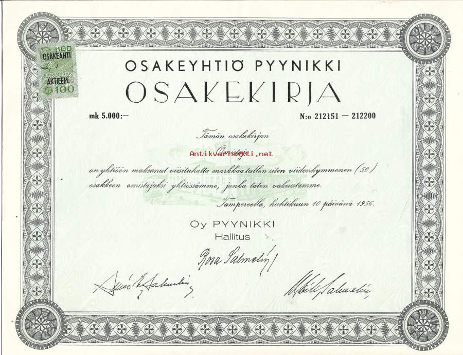Pyynikki Oy, osakekirjaTampere 1956 merkitty