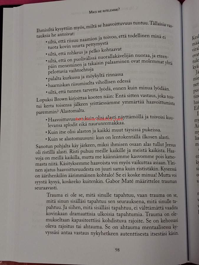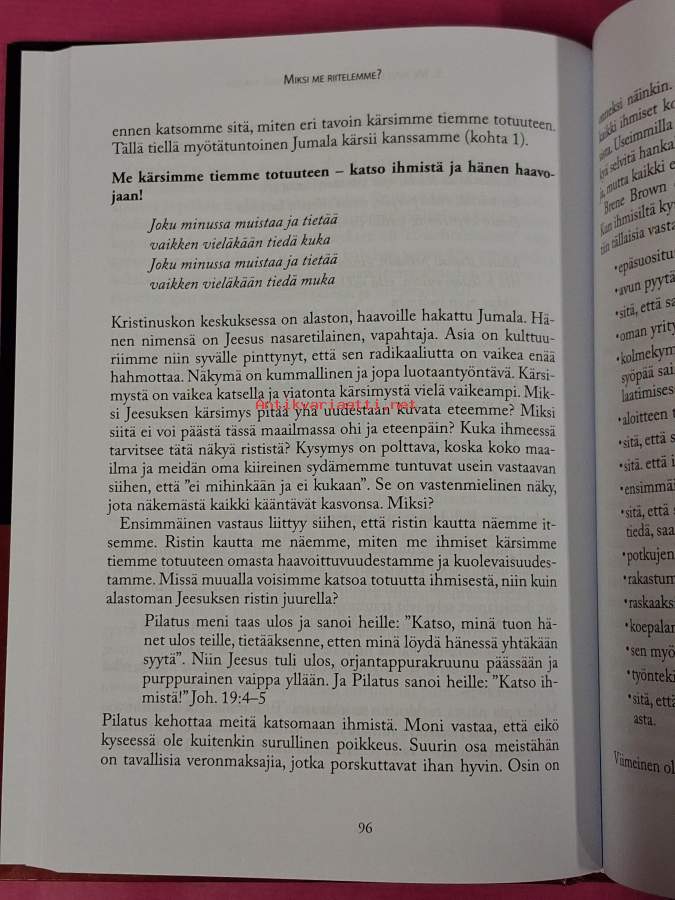 Kirja käsittelee sitä, että miksi me ihmiset riitelemme. Miksi meillä on taipumusta päästä konflikteihin itsemme ja toistemme kanssa? Kirja avaa erilaisia ymmärrys- ja tekniikkavälineitä riitojen ennaltaehkäisemiseen ja niiden rakentavaan käsittelyyn esim. pariskuntien, ystävien ja työpaikkojen kesken.