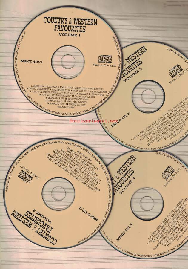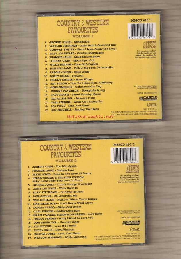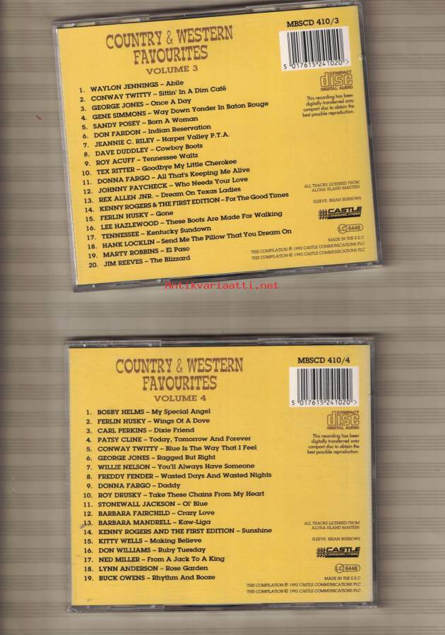4x cd, mm: Willie Nelon, Kenny Rogers, Emmylou Harris, Johnny Cash, Jim Reeves, Jerry Lee Lewis, Lynn Anderson, Carl Perkins, Waylon Jennings, Frankie Laine, Tex Ritter, Lee Hazlewood, Roy Drusky, ym.-postipaketti