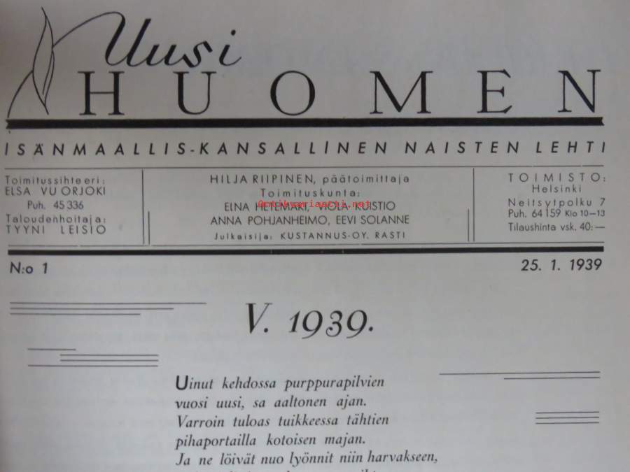 Uusi Huomen lehtiä vuodelta 1939