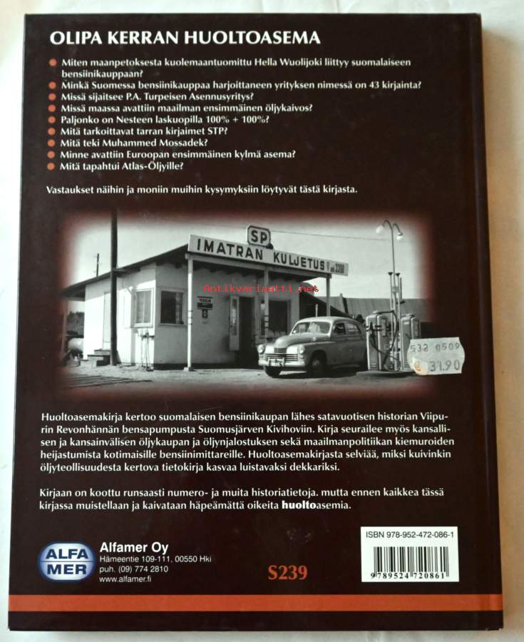 Huoltoasemakirja kertoo suomalaisen bensiinikaupan lähes satavuotisen historian Viipurin Revonhännän bensapumpusta Suomusjärven Kivihoviin. Huoltoasemakirjassa Jukka Vesterinen näyttää, miksi kuivinkin öljyteollisuudesta kertova tietokirja kasvaa luistavaksi dekkariksi. Numero- ja muiden historiatietojen ohella kirjassa muistellaan ja kaivataan häpeämättä oikeita huoltoasemia.