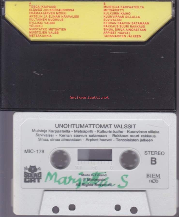 C-kasetti - Unohtumattomat valssit, 1987. MIC-178. 20 raitaa.