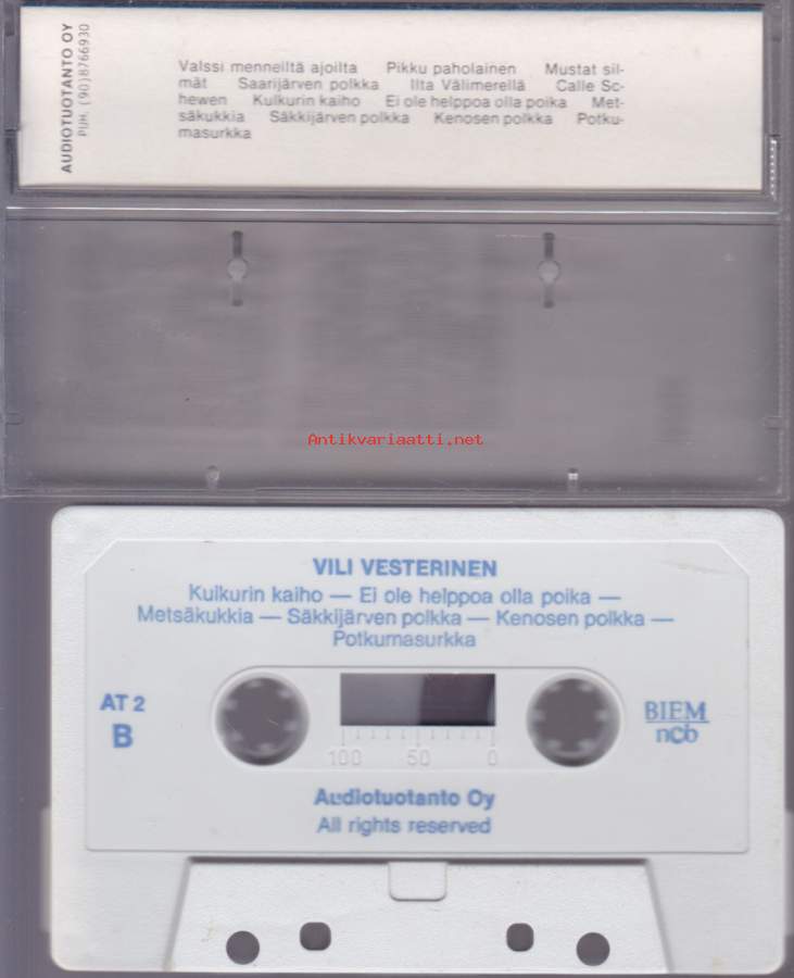 C-kasetti - Vili Vesterinen - Valssi menneiltä ajoilta. Alkuperäisäänityksiä, 1982. MIC-178. 20 raitaa.