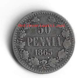 50 penniä 1865 hopeaa