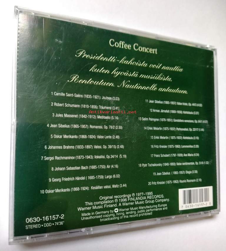 CD Presidentti Coffee Concert Nautinnollisiin hetkiin Finlandia Records for Oy Gustav Paulig Ab 0630-16157-2 1997