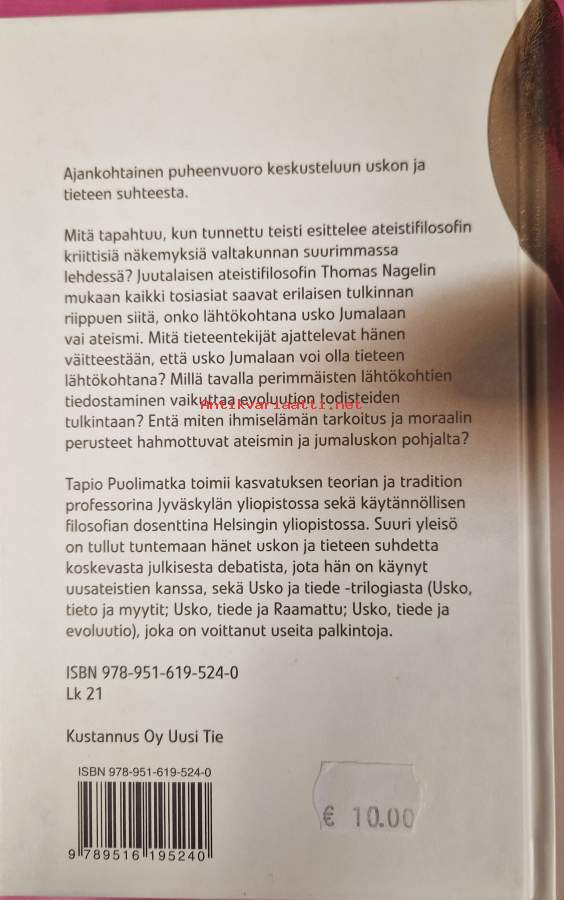 Asiasanat: jumalakäsitykset, tiede, tieteenfilosofia, ateismi, vetenskap, vetenskapsfilosofi, gudsuppfattningar, ateism, uskonto ja uskonnot, religion och religioner