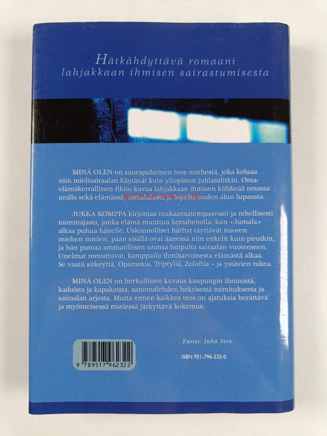 Hyvä. Pienoista kolhua selkämyksen yläpäässä, pienoista repeämää yhdessä reunassa. Kansipaperin kunto: jonkin verran kulumaa/pienoisia repeämiä