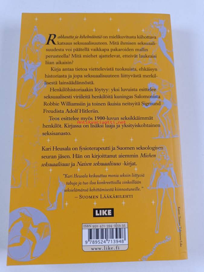 Asiasanat: sukupuolielämä, erotiikka, huumori, julkisuuden henkilöt, parisuhde, seksuaalinen käyttäytyminen, seksuaalisuus, avioliitto, uskomukset, seksologia, sukupuolielimet, kansantavat, raskauden ehkäisy