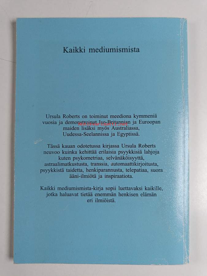 Merkinnät: omistajamerkintä (tarra)Alkuteos: All about mediumshipAsiasanat: paranormaalit ilmiöt, selvänäkö, telepatia, parapsykologia, meediot, spiritismi, automaattikirjoitus