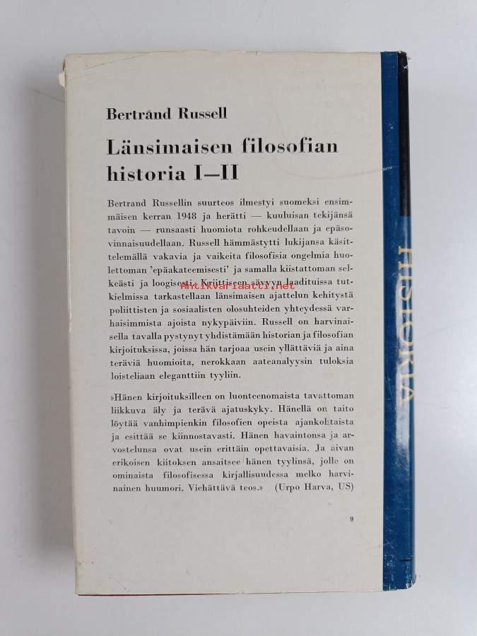 Sarja: LaatukirjatAlkuteos: History of western philosophy and its connection with political and social circumstances from the earliest times to the present dayAsiasanat: historia, oppihistoria, filosofia, uusi aika
