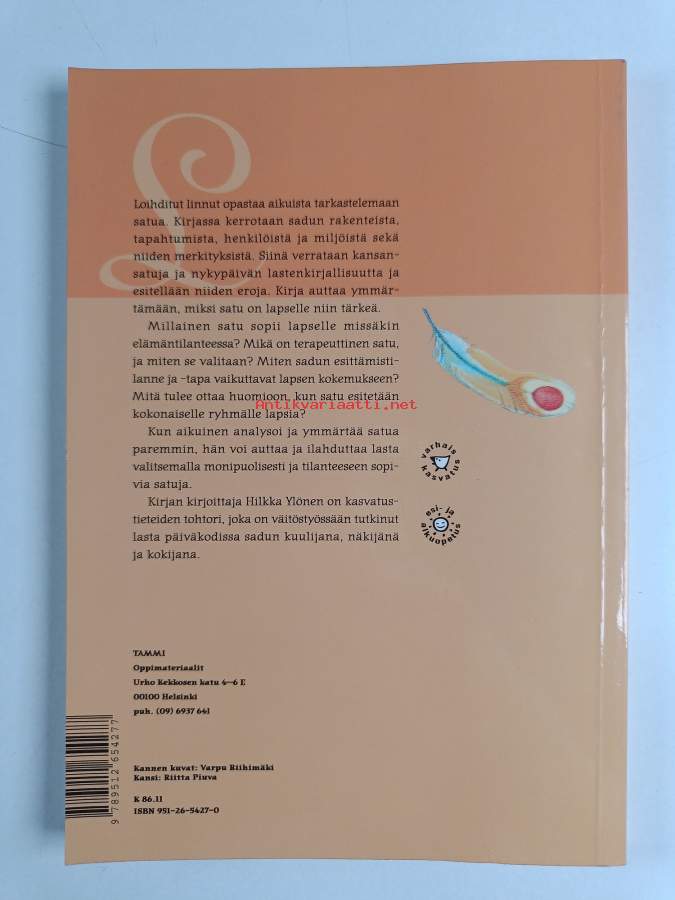 Muu(t) tekijä(t): Mari TamminenAsiasanat: persoonallisuuden kehitys, mielenterveys, kirjallisuudentutkimus, sadut, lastenkirjallisuus, vaikutukset, tutkimus, hoitomenetelmät, tulkinta, hoito, symboliikka, kriisit, tunteet, tunne-elämä, mielikuvitus, mielikuvat, symbolit, taruolennot, kansansadut, lapsipsykologia, varhaiskasvatus, päiväkodit, esiopetus, sisällönanalyysi, satuolennot, pelko, kirjallisuusterapia, roolileikit, lapsen kehitys, reseptio, lapset (ikäryhmät), merkitykset (semantiikka), saturomaanit, metaforat, merkitys (tärkeys)