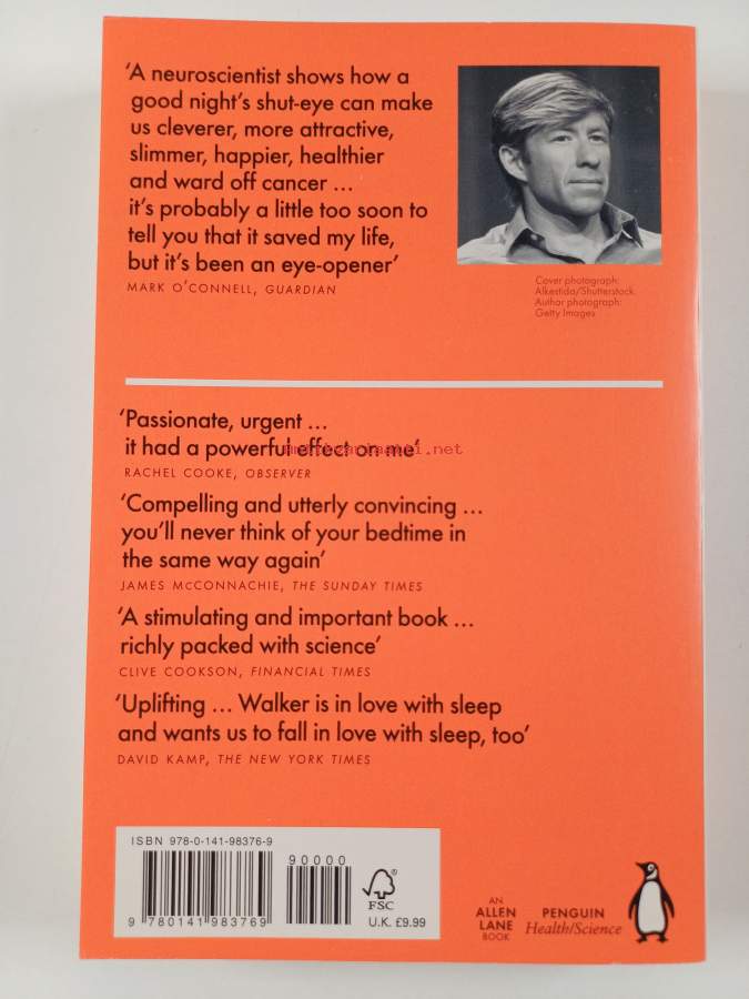Sarja: Penguin booksAsiasanat: terveysvaikutukset, unet, unihäiriöt, neurotieteet, univaje, unettomuus, terveyshyödyt, uni (lepotila), hälsoeffekter, sömn, sömnstörningar, sömnlöshet, sömnbrist, neurovetenskaper, drömmar, unitutkimus, sömnforskning, hälsofördelar