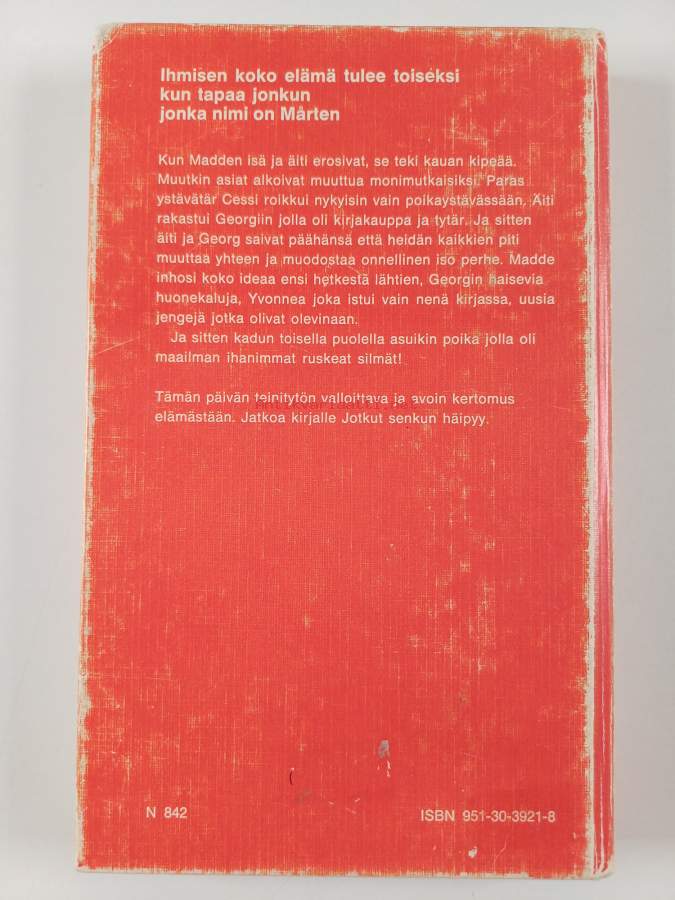 Hyvä. Tarkempi kuntoluokka: K3- ; Hieman tahraisuutta, pientä kulumaa, selkämyksessä hieman vinoutta, takana vanha hintalappu