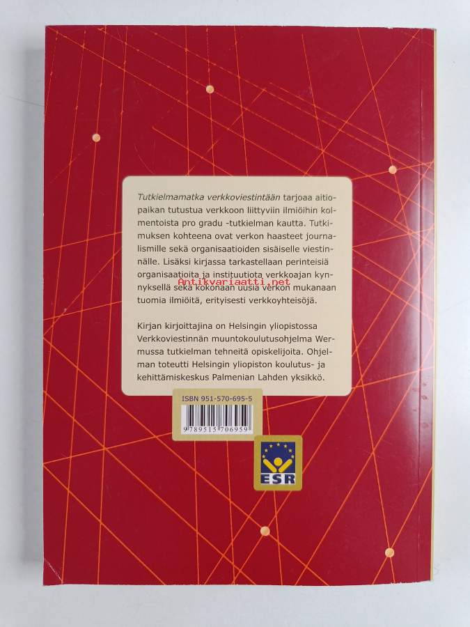 Muu(t) tekijä(t): Pekka Aula, Mikko VilliSarja: Viestinnän laitoksen tutkimusraportteja / Helsingin yliopisto 1/2006Asiasanat: Internet, tutkimus, televisio-ohjelmat, sähköinen viestintä, vaikuttaminen, yhteisöllisyys, tietoverkot, pörssit, verkkoviestintä, sarjaohjelmat, julkinen sektori, organisaatioviestintä, WWW-sivustot, uusmedia, keskusteluryhmät, intranet, viestinnän sosiologia, verkkojuttelu, verkko-opetus, verkkolehdet, verkkotaide, virtuaaliyhteisöt