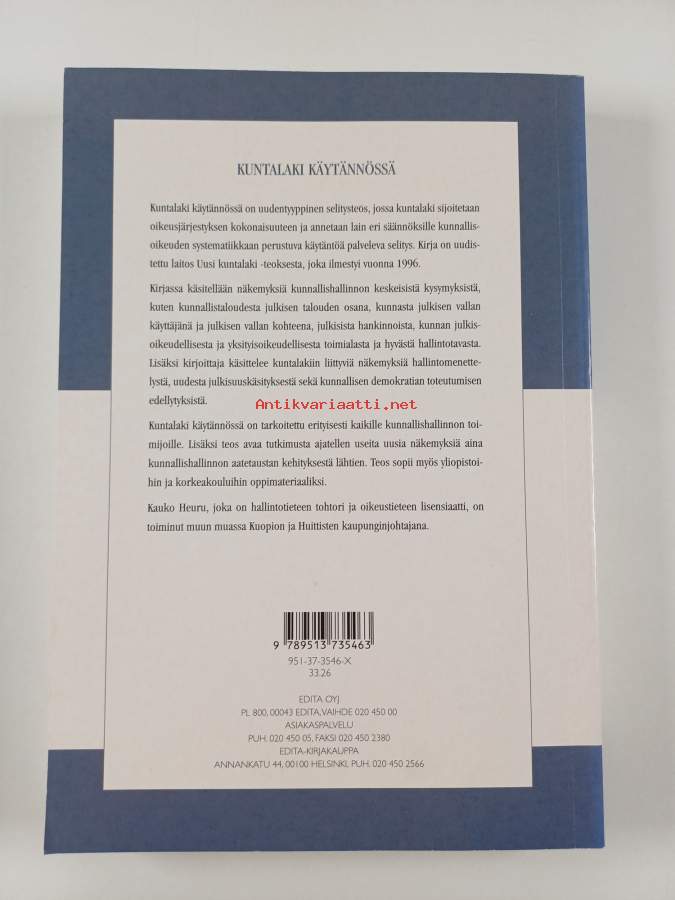 Asiasanat: kunnallishallinto, lainsäädäntö, kunnat, itsehallinto, kunnallisoikeus, kuntalaki