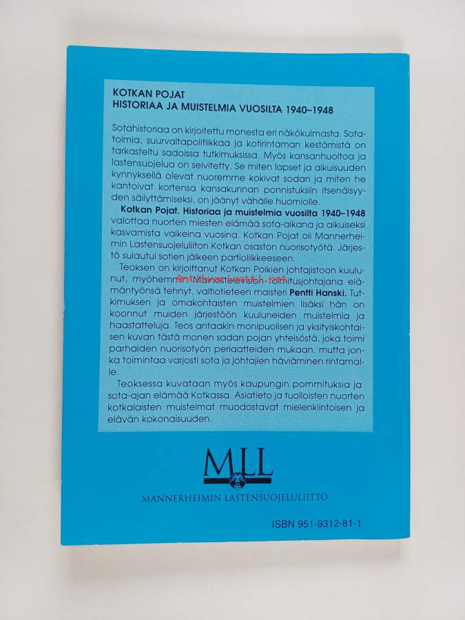Asiasanat: muistelmat, talvisota, jatkosota, maanpuolustus, historia, järjestöhistoriikit, historiikit, sotahistoria, järjestöt, koulutus, pojat, nuoret, toinen maailmansota, kasvatus, järjestötoiminta, nuorisotyö, nuorisojärjestöt, pojat (ikäryhmät), vinterkriget, pojkar, memoarer, fostran, andra världskriget, fortsättningskriget, organisationshistoriker, utbildning, ungdomsarbete, ungdomsorganisationer, organisationsverksamhet, krigshistoria, historiker (verk), föreningar, yhdistyshistoriat