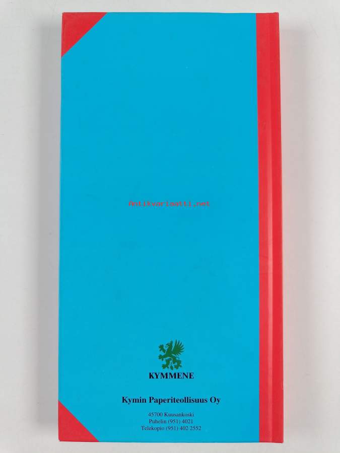 Hyvä. Tarkempi kuntoluokka: K3+ ; Hieman kulumaa kansissa. etulehdellä hieman jälkeä kumitetusta hintamerkinnästä, kumi jättänyt hankauman sivuun