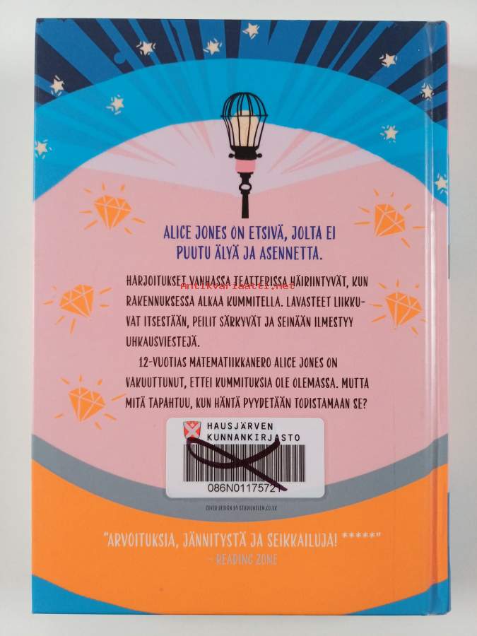 Muu(t) tekijä(t): Ulla SelkäläSarja: Alice Jones koodaa ja ratkoo 2Alkuteos: The ghost lightAsiasanat: mysteerit, yksityisetsivät, uhkailu, kummittelu, matemaattiset ongelmat