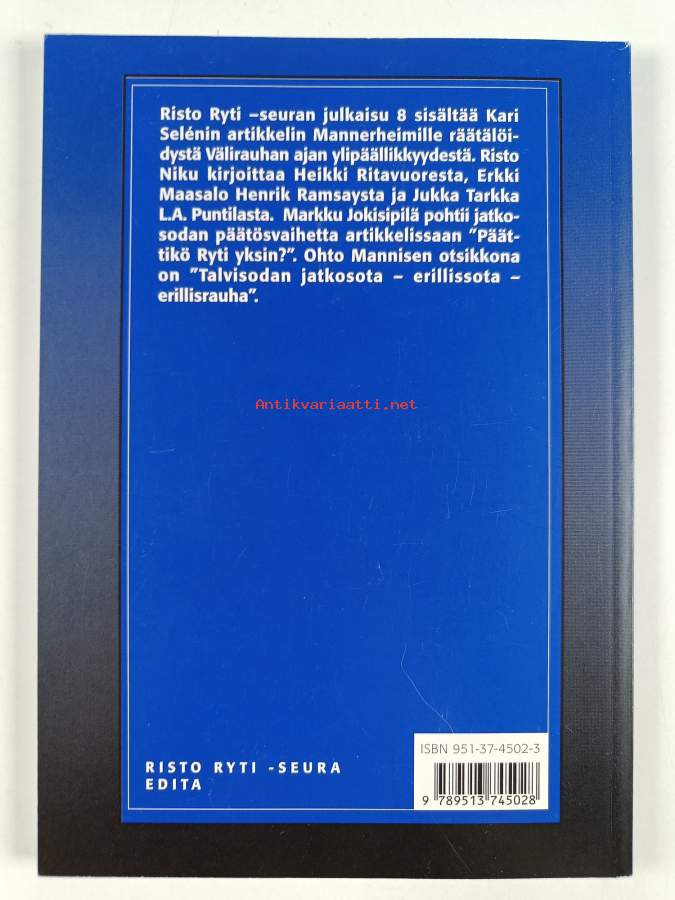 Muu(t) tekijä(t): Jukka-Pekka PietiäinenSarja: Risto Ryti -seuran julkaisuja 8Asiasanat: jatkosota, historia, presidentit