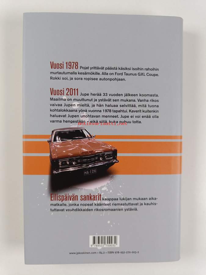 Erinomainen. Tarkempi kuntoluokka: K4- ; Pienoista kulumaa reunoilla ja kulmissa. Kansipaperin kunto: pienoista kulumaa reunoilla, muuten erinomainen