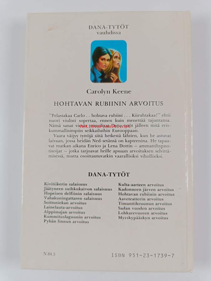 Muu(t) tekijä(t): Margit SalmenojaSarja: Dana-tytöt 12Alkuteos: The winking ruby mystery