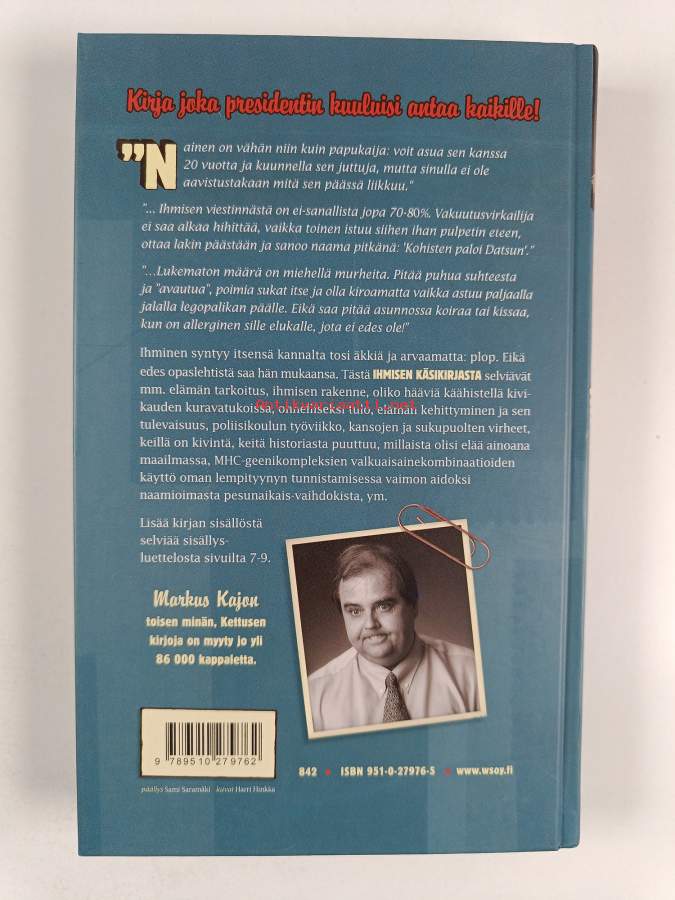 Kettusen kannettava, 2008. Kajon sanataituruus arjen ja juhlan pienistä iloista ja murheista jaksaa kantaa vuodesta toiseen. Lukija myhäilee mukana.