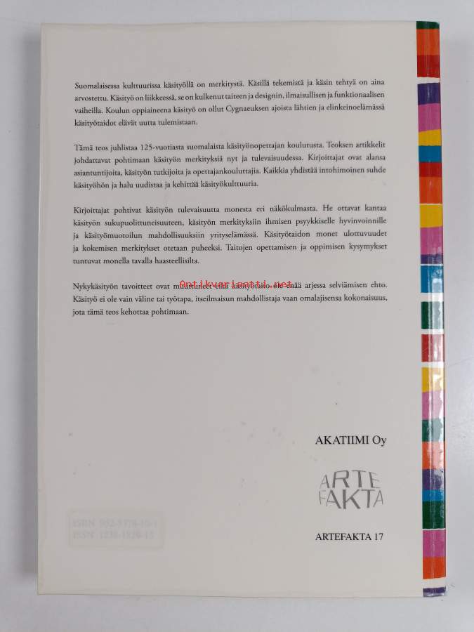 Muu(t) tekijä(t): Leena Kaukinen, Miia CollanusMerkinnät: omistajamerkintäSarja: Artefakta 17Asiasanat: naiset, muotoilu, käsityöt, kulttuuri, yrittäjyys, peruskoulu, tulevaisuus, opetus, suunnittelu, sukupuoli, käsityöläiset, didaktiikka, hiljainen tieto, opettajankoulutus, tuotteet, luokanopettajat, kädentaidot, taitoaineet, käsityötiede, käsityö (toiminta), käsityökasvatus