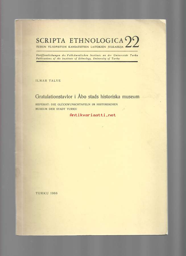 Gratulationstavlor i Åbo stads historiska museum / Ilar Talve Skripta Ethnologia 22 1966