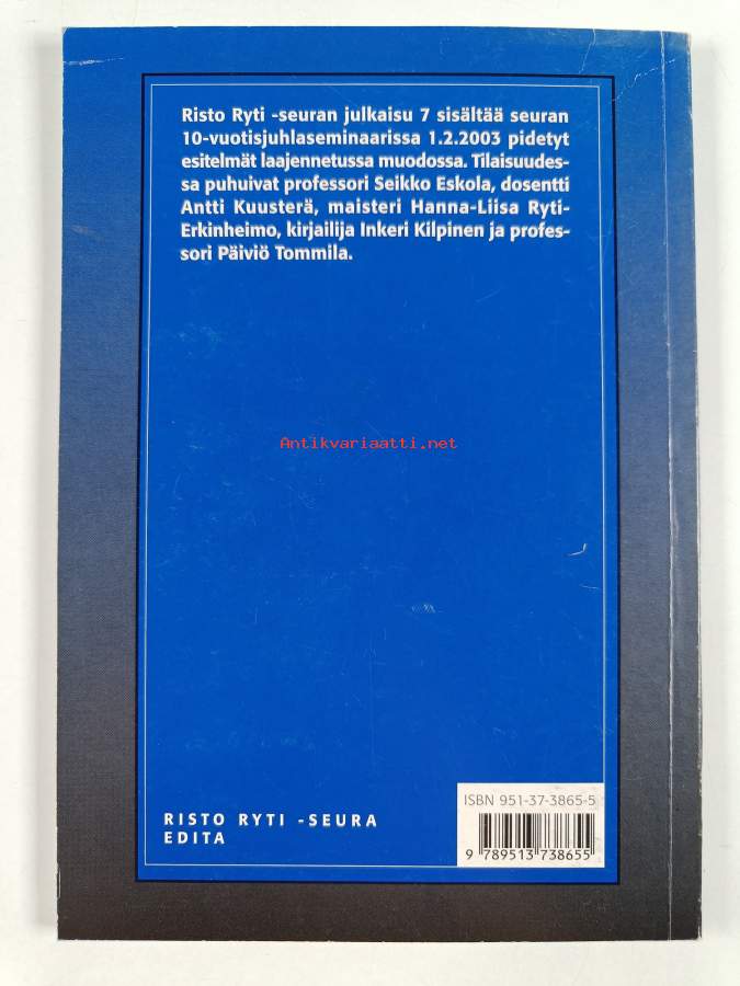 Muu(t) tekijä(t): Seikko Eskola, Jukka-Pekka PietiäinenSarja: Risto Ryti -seuran julkaisuja 7Asiasanat: historia, henkilöhistoria, poliittinen historia, talouspolitiikka, presidentit, rahapolitiikka, talous, henkilökuvat, ekonomi, personhistoria, politisk historia, presidenter, ekonomisk politik, penningpolitik