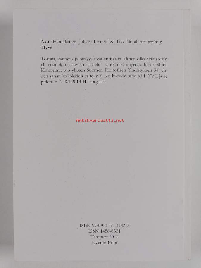 Muu(t) tekijä(t): Ilkka Niiniluoto, Juhana Lemetti ym.Sarja: Filosofisia tutkimuksia Helsingin yliopistosta 45Asiasanat: paha, filosofia, etiikka, moraali, arvofilosofia, kokoukset, hyveet, filosofi, etik, moral, käytännöllinen filosofia, möten, det onda, praktisk filosofi, dygder, värdefilosofi, arvot (käsitykset), värderingar (uppfattningar)