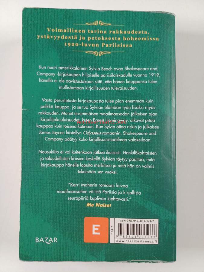 Alkuteos: The Paris BooksellerAsiasanat: naiset, kirjailijat, kulttuurielämä, Pariisi, Ranska, kirjat, kirja-ala, kirjakaupat, kirjakauppiaat, yhteisöt, maailmansotien välinen aika