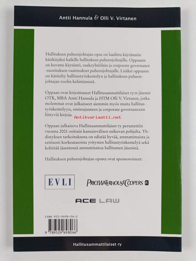 Muu(t) tekijä(t): Olli V. VirtanenAsiasanat: hallitukset, yritykset, osakeyhtiöt, yhtiöoikeus, hallinto, puheenjohtajat, hallintoelimet
