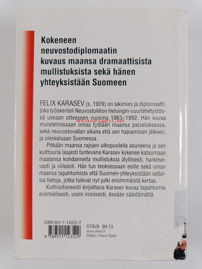Hyvä. Tarkempi kuntoluokka: K3- ; Hieman kulumaa kansissa, selkämyksessä hieman vinoutta. Kansipaperin kunto: joitain repeämiä/kulumaa