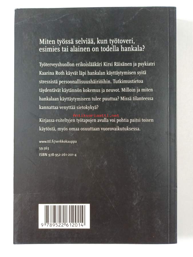 Muu(t) tekijä(t): Kaarina RothAsiasanat: ihmissuhteet, työyhteisöt, henkinen hyvinvointi, persoonallisuus, käyttäytymishäiriöt, persoonallisuushäiriöt, masennus, uupumus, henkinen väkivalta, psykologiset testit, sosiaalinen käyttäytyminen, työilmapiiri, MBTI