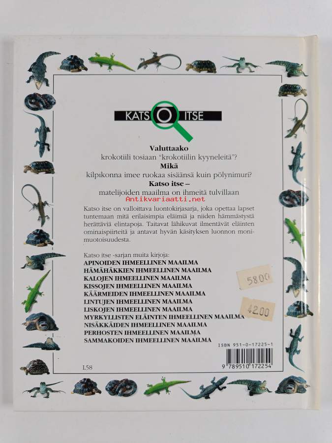 Muu(t) tekijä(t): Kaarina Miettinen, Jerry YoungSarja: Katso itseAlkuteos: Amazing crocodiles & reptilesAsiasanat: krokotiilit, matelijat, liskot
