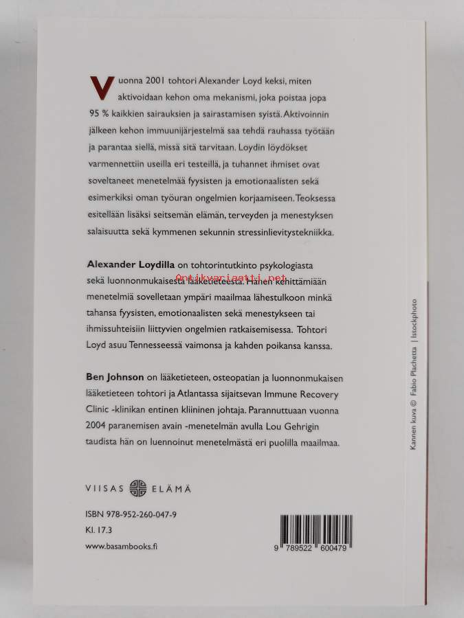 Muu(t) tekijä(t): Leena Siitonen, Ben JohnsonAlkuteos: The healing codeAsiasanat: terveys, ihminen, elämäntaito, itsehoito, itsekasvatus, elämänhallinta, energia, stressinhallinta, parantuminen, sairaudet