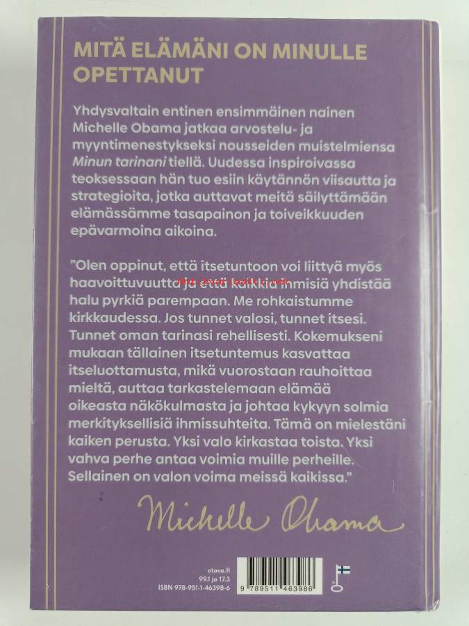 Muu(t) tekijä(t): Ilkka RekiaroAlkuteos: The light we carryAsiasanat: itsetunto, presidentit, aviopuolisot, aviovaimot, henkinen hyvinvointi, elämänkaari, inspiraatio, itsensä toteuttaminen, itsensä hyväksyminen