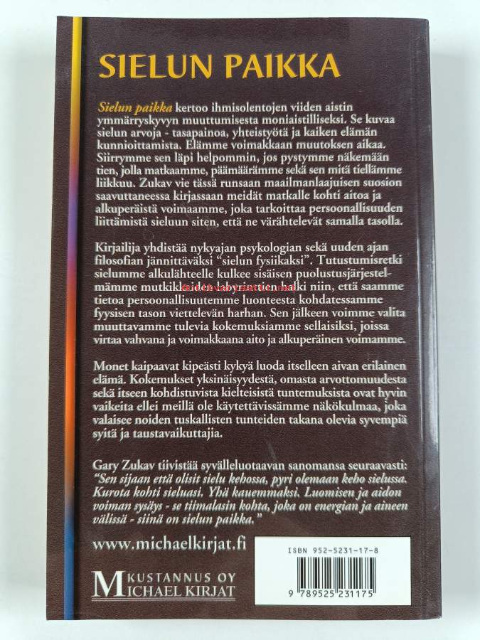 Muu(t) tekijä(t): Riitta MetsovuoriAlkuteos: The seat of the soulAsiasanat: riippuvuus, henkinen kasvu, sielu, karma, intuitio, ymmärtäminen