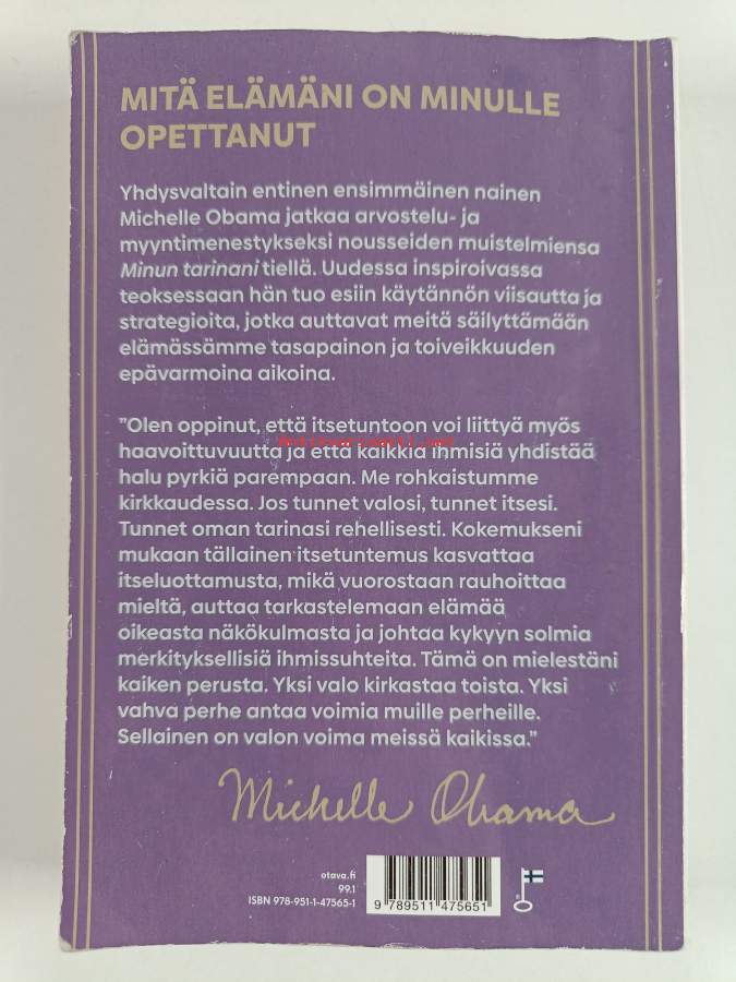 Alkuteos: The Light We Carry. Overcoming in Uncertain TimesAsiasanat: inspiraatio, Amerikka, Obama, ensimmäinen nainen