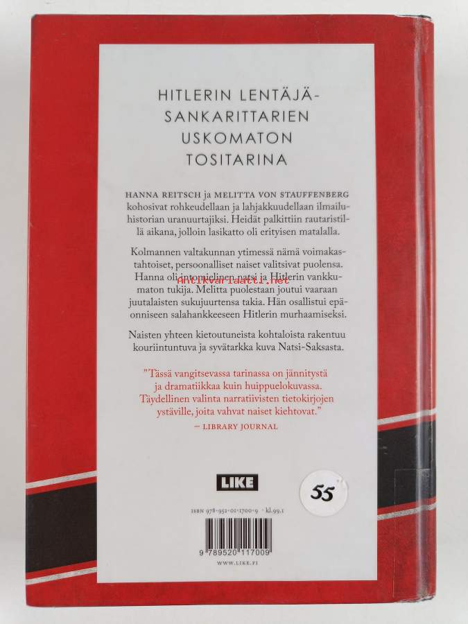 Muu(t) tekijä(t): Kirsi LuomaAlkuteos: The women who flew for HitlerAsiasanat: historia, naiset, sotahistoria, toinen maailmansota, lentäjät, sotilaslentäjät, kolmas valtakunta