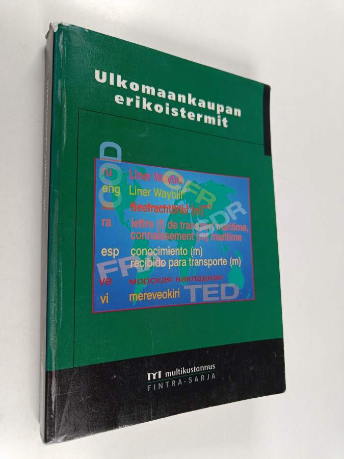 Muu(t) tekijä(t): Kerstin SalminenSarja: Fintra-julkaisu 10; Fintra-julkaisu nro 10Asiasanat: sanakirjat, saksan kieli, monikieliset sanakirjat, englannin kieli, espanjan kieli, liiketoiminta, sanastot, viron kieli, terminologia, ruotsin kieli, venäjän kieli, ulkomaankauppa, kansainvälinen kauppa, rahoitus, oikeustiede, ranskan kieli, huolinta